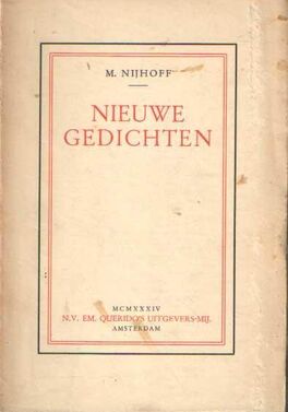 Nieuwe gedichten, de derde poëziebundel van Martinus Nijhoff, verscheen in november 1934 bij uitgeverij Querido. Eerder die maand had hij in het dagblad Het vaderland beweerd dat het land vol was van ‘onproductieve belangrijkheid’ en dat een eersterangsauteur bijna genoodzaakt was in het buitenland te gaan wonen. De vormgeving van Nieuwe gedichten geeft een vergelijkbaar signaal: met de belettering van het omslag in rood en zwart, ingekaderd door een dubbele rode lijn en daaromheen een dikkere zwarte lijn, lijkt de bundel sprekend op de uitgaven van de Nouvelle Revue française.