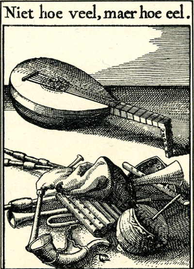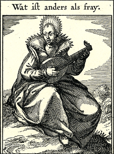 Een vrouwe, zingende muzieke en spelende op een luite, wordt wel geprezen om ’t gezelschap te vermaken, van de lichtvoetige vrijers; dan de verstandige minnaars, die naar vriendenraad horen en doen, zullen alzulke wel hogelijk, ja in de lucht verheffen met woorden, dan zij laten ze een ander trouwen, want AL TE WALGT.